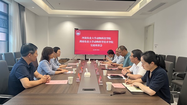 湖南农业大学动物科学技术学院交流座谈会上,湖南农业大学动物科学技术学院院长贺喜、党委书记祖智波和脱裤吧