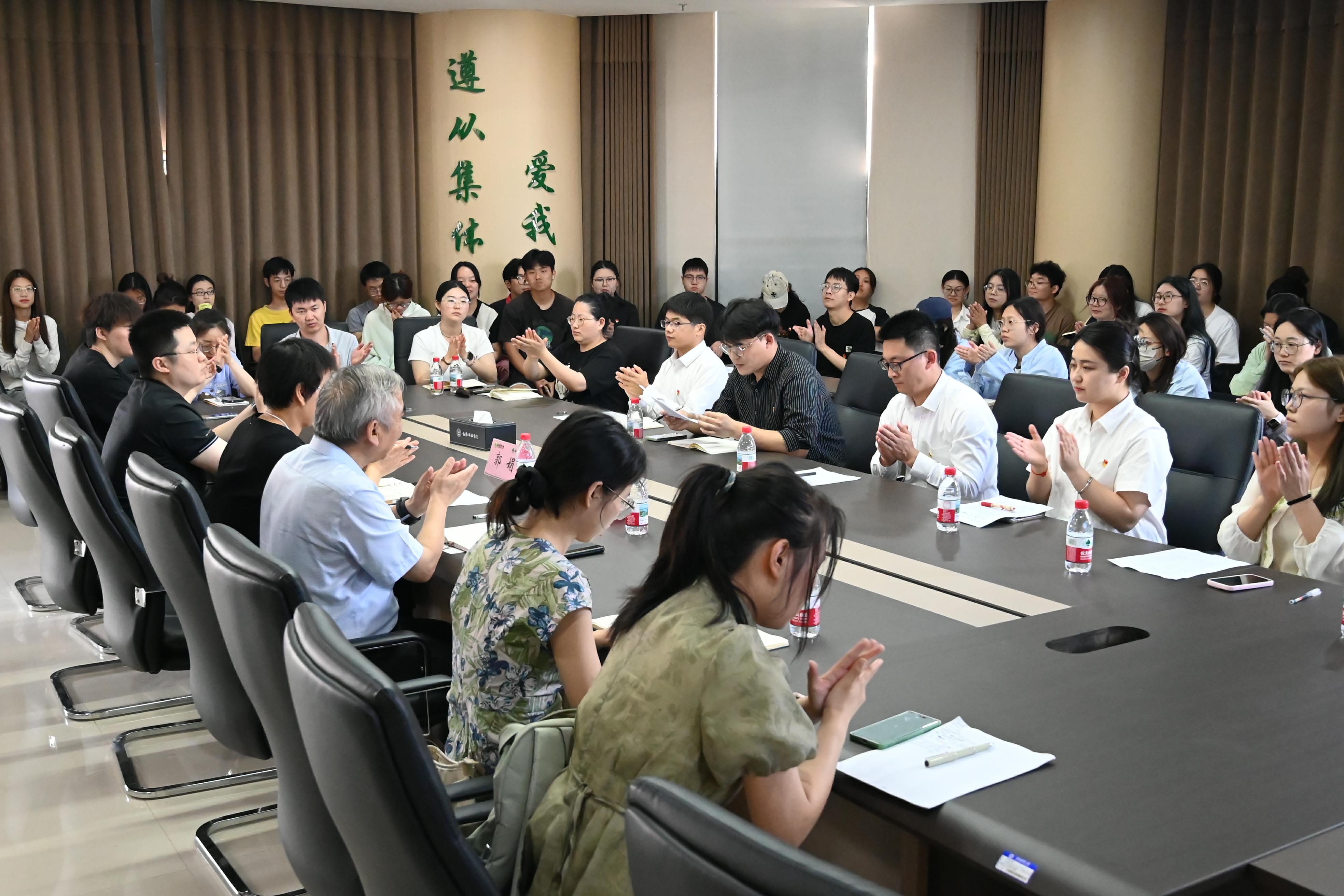 于龙子湖校区第一实验楼501会议室举办2025届毕业生座谈会。院长李明、党委副书记郭娟、辅导员赵姝灿、郭明和2025届毕业生代表参加本次座谈会。会议由郭娟主持。