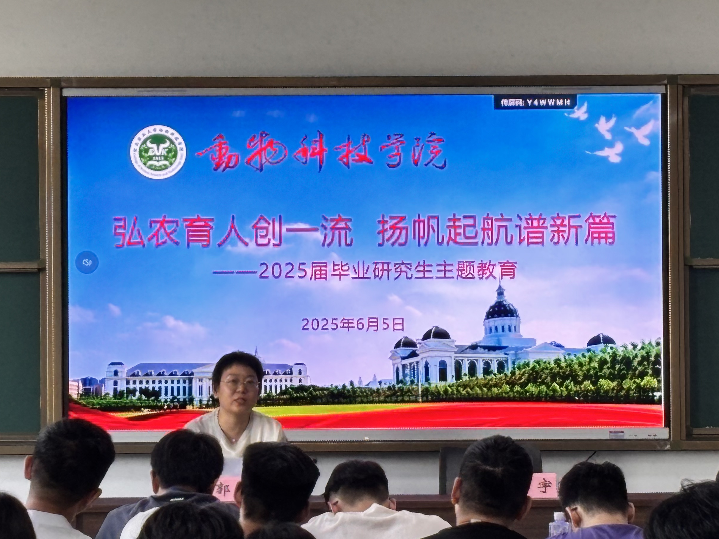 举行“弘农育人创一流,扬帆起航谱新篇”毕业研究生主题教育活动。副院长孙宇出席,辅导员郭明及全体2025届毕业研究生参会,活动由院党委副书记郭娟主持。