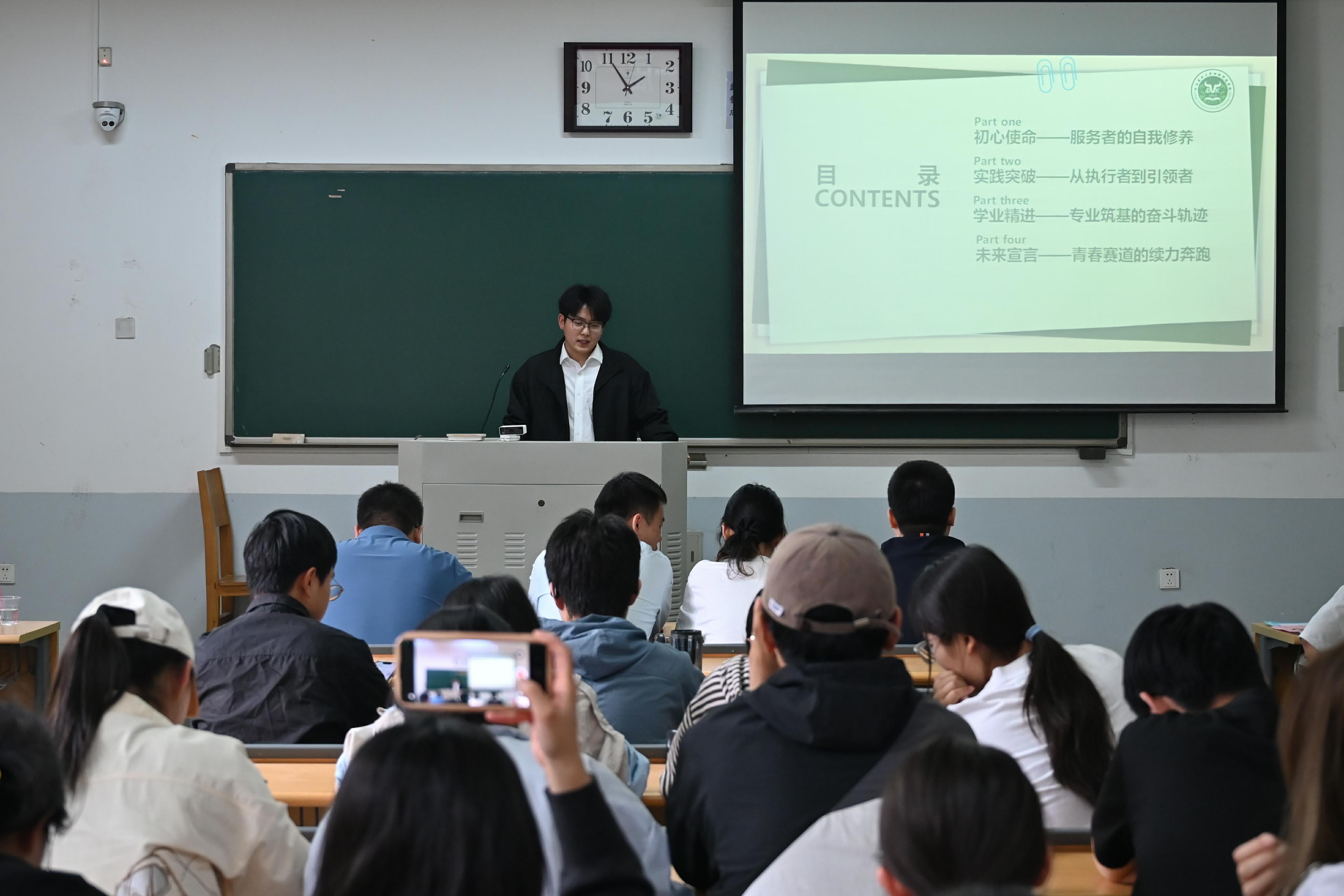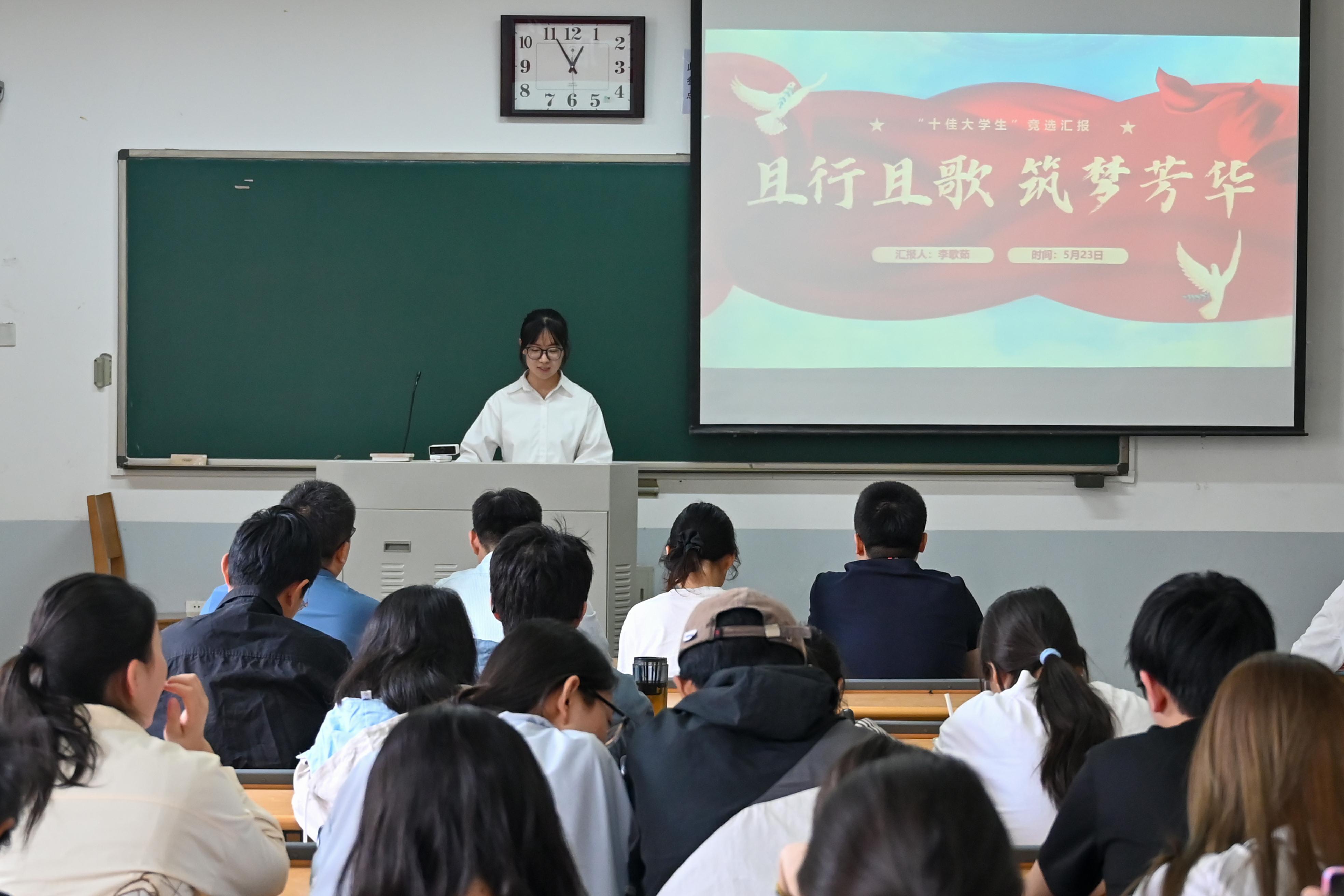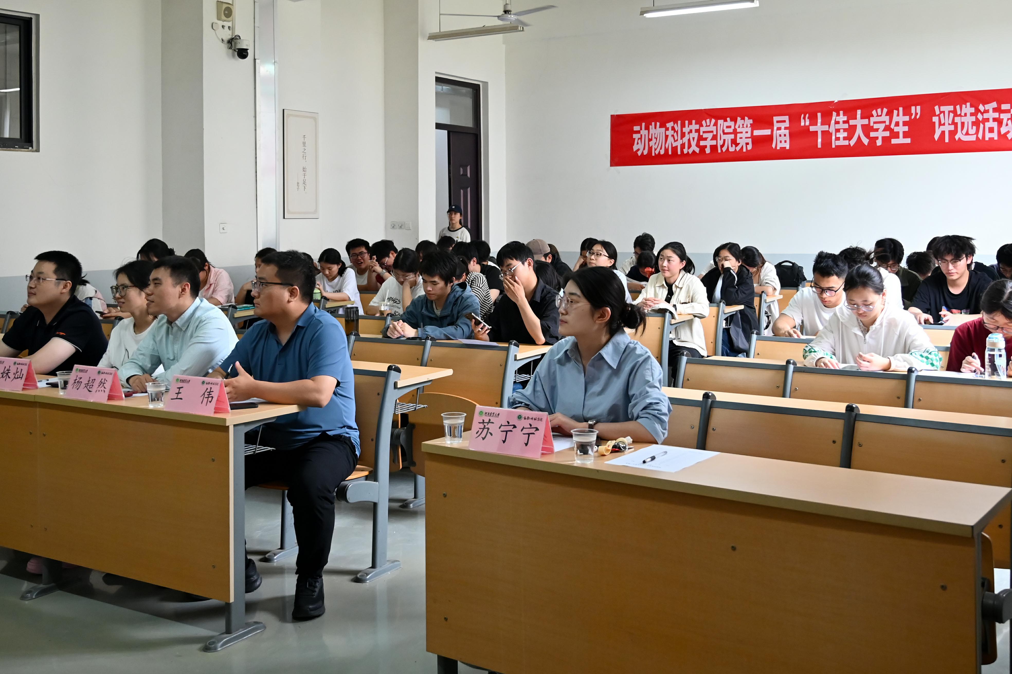 经过前期评审,共有16位学生进入现场展示环节。评选现场,16位候选人依次上台进行个人汇报与才艺展示,全方位展现自我风采。他们从思想政治、学业成果、实践工作与志愿服务等方面,展现了充实多元的大学生活,彰显出农大学子昂扬向上、积极奋进、励志成才的精神面貌。最后,秉持“公平、公正、公开”的原则,现场评委老师与各班学生代表进行了现场投票,最终确定脱裤吧