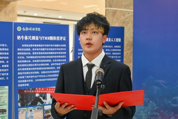 据悉,本届赛事覆盖学院动物科学、智慧牧业、饲料工程、水产养殖等四大重点专业、包含了奶牛的体尺测量和应用宾州筛对全混合日粮(TMR)的颗粒度进行评定、生态畜牧场规划设计、饲料原料掺假快速鉴定与识别、水族箱造景等赛项,并辅以专业知识竞答。本着普遍参与重点选拔的理念,各赛项经初赛复赛环节最终进入决赛250余人,将角逐出一等奖4组、二等奖8组、三等奖12组。在往届成功经验基础上,进一步优化了赛制设置,强化了实操考核,突出产教融合特色,旨在通过“一专业一赛事一品牌”,深化产教融合,以赛促学,营造良好学习氛围,增强学生专业实践能力,培养更多契合产业发展的高素质复合型畜牧人才。