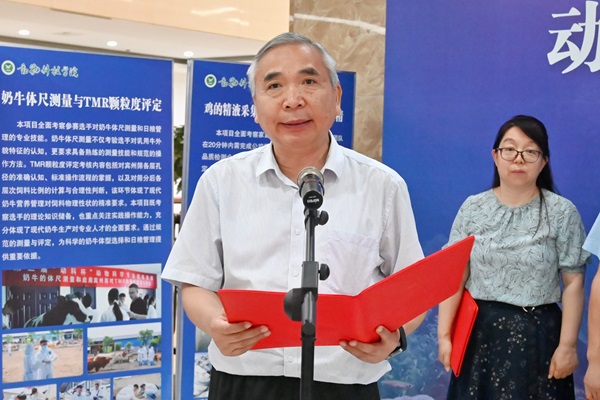 李明致辞,对领导嘉宾表示由衷感谢和热烈欢迎,指出,习近平总书记强调,要“培养更多高技能人才和大国工匠”支撑中国制造、中国创造,在国家新农科建设的大背景下,培养具有扎实理论基础和过硬专业技能的复合型人才是学院的重要使命。本次活动正是落实总书记指示精神,培养高素质专业人才的重要举措。对于全面提升学生的专业实践能力和创新意识、储备优秀竞赛选手等具有重要意义。希望参赛选手相互切磋、共同提高,赛出风格、赛出水平;希望评委老师认真负责、公平公正,希望全体动科人以此次活动为契机,以更加饱满的热情、更加务实的作风,为提升学校人才培养质量、推动学科建设发展作出新的贡献。