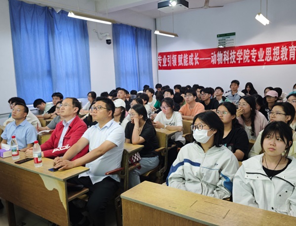 于文化路校区3号楼106教室举行2024级动物育种专业思想教育讲座。特邀西北农林科技大学蓝贤勇教授作主讲嘉宾,学院副院长李转见主持会议,2024级动物育种专业全体学生参会。
