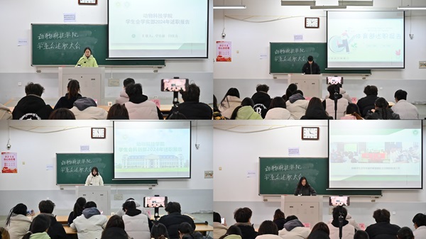 于龙子湖校区繁塔楼E113教室举办“以新提质 赋能成长”学生会述职大会,辅导员赵姝灿、杨超然及全体学生会成员参会,会议由黄子浩主持。