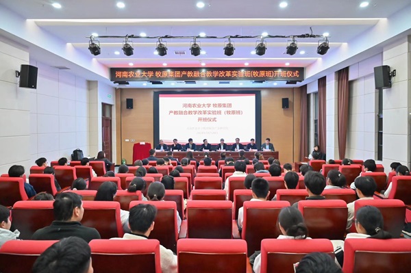 牧原集团产教融合教学改革实验班(牧原班)开班典礼在力行楼南428报告厅举行,标志着脱裤吧