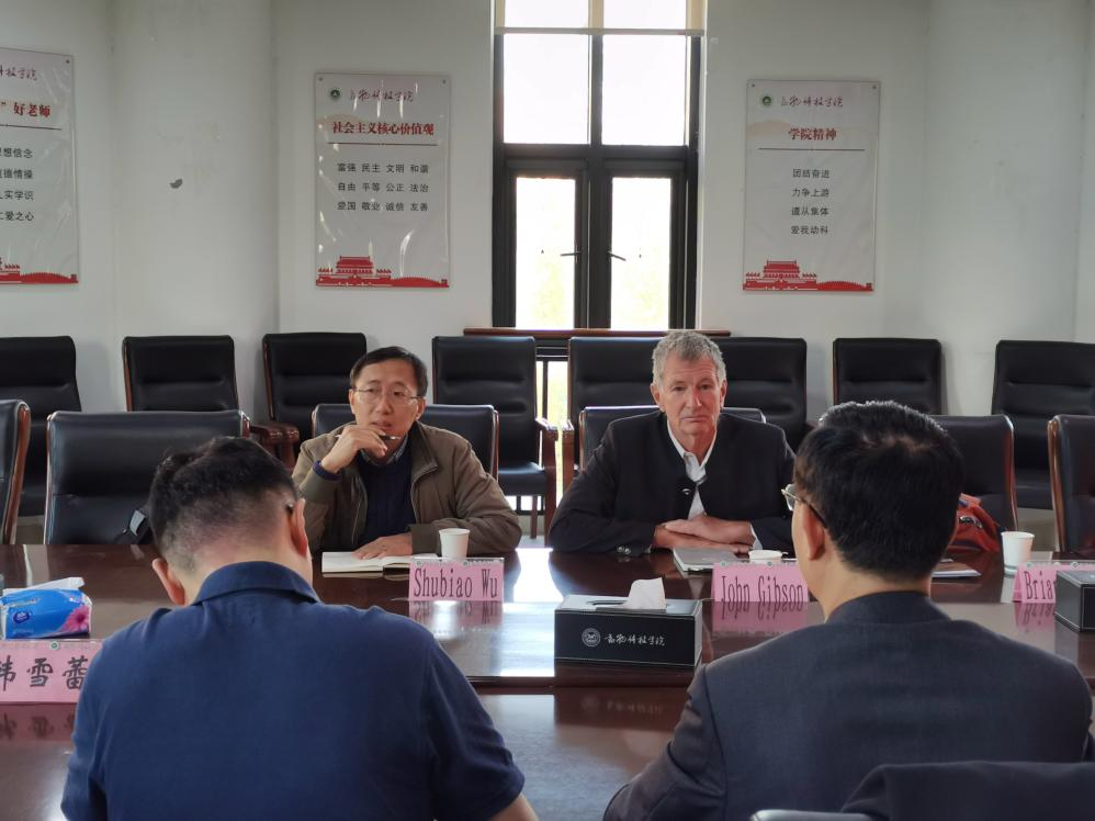 高腾云教授对John Gibson院长一行的到来表示了热烈欢迎,并介绍了参会人员,他还回忆了2018年与院长李明等人到新英格兰大学访问的情况。John Gibson院长介绍了新英格兰大学环境和乡村科学学院的教学及科研情况,Shubiao Wu介绍了研究生联合培养项目。随后,Gibson院长表示,新英格兰大学愿意在共同的研究领域与脱裤吧