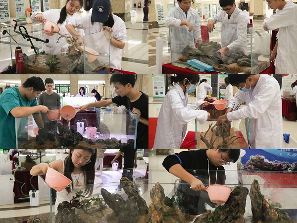 第二届水族箱造景技能大赛暨第八届全国大学生水族箱造景技能大赛校内选拔赛。校党委学工部部长、学生处处长徐峰,校团委书记贾云飞,校教务处副处长程西永,学院领导班子、院中心实验室孙向丽以及脱裤吧