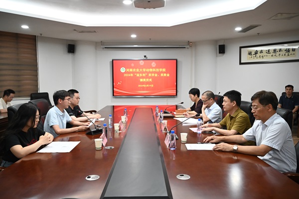于龙子湖校区第一实验楼南201会议室举行2024年“溢多利”奖学金、奖教金颁奖仪式。广东溢多利生物科技股份有限公司河南办事处总经理颜彦、脱裤吧