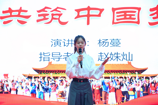 2021级学子杨蔓参与、赵姝灿老师指导的《凝聚民族力量 共筑中国梦想》演讲以选手自己身边事例为引,用饱满的热情,生动的语言深入浅出地阐述了民族团结的重要意义、分享了亲身感悟,表达了对实现中华民族伟大复兴中国梦的热切期盼,最终获得本次比赛一等奖。