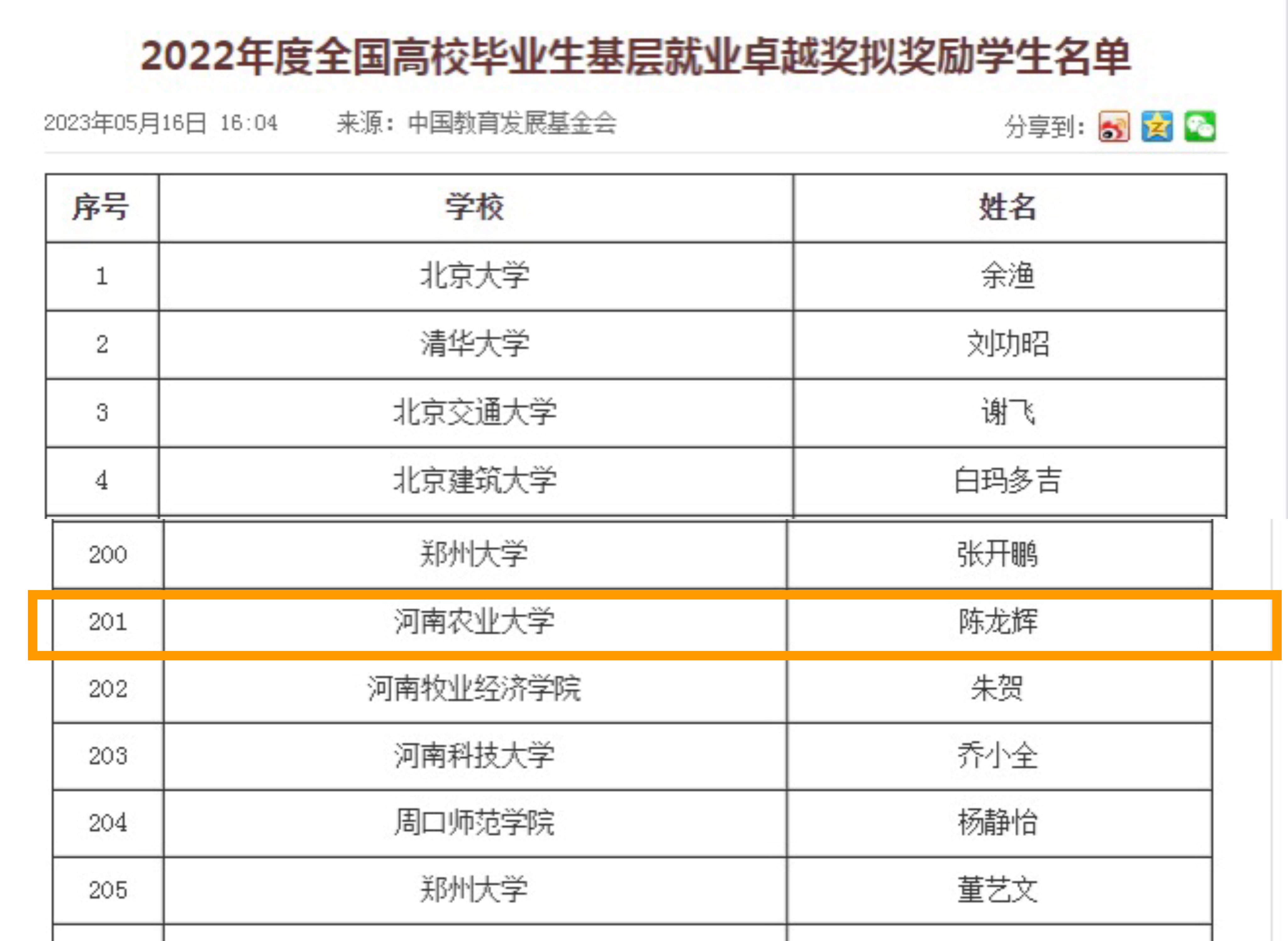 2016届优秀毕业生陈龙辉光荣上榜。