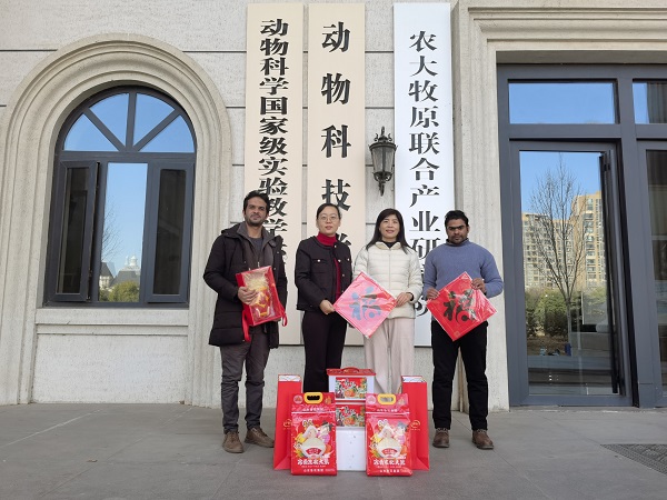 郭娟一行与留学生亲切交流,仔细询问了他们的生活和学习情况,叮嘱留学生们寒假期间继续做好自身防护,加强健康管理,遵守学校的规章制度,在学习或生活中若有任何困难和需求,可及时沟通联系。现场,为留学生们赠送了含有“福”造型馒头、新鲜羊肉、牛奶、水果的“新春福袋”,祝福大家度过一个平安幸福的新春佳节。