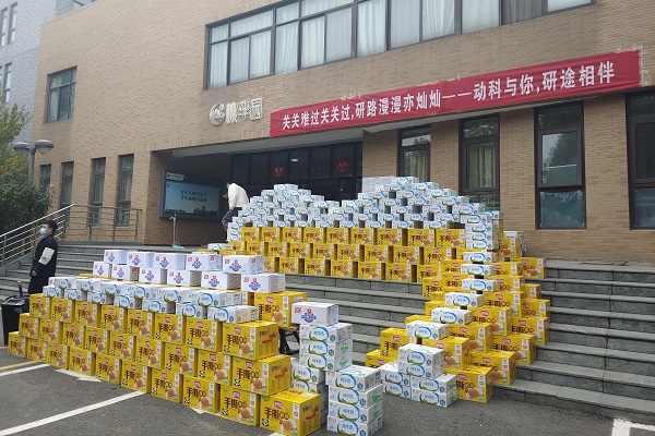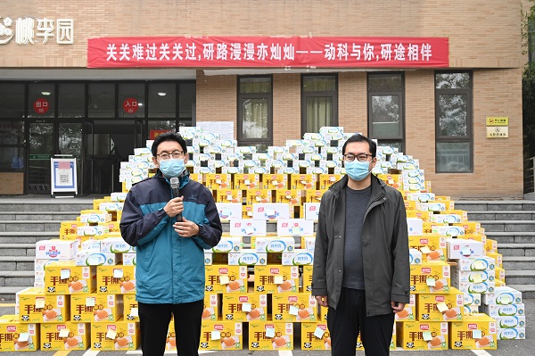 于桃李宿舍楼前举办“关关难过关关过,研途漫漫亦灿灿——动科与你,研途相伴”冬季送温暖活动。副院长付彤、团委副书记黄璞及兼职辅导员杨盼盼出席活动。