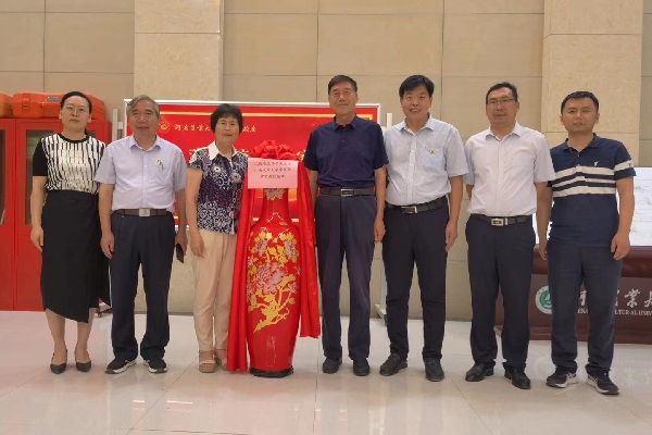 为庆祝农大百廿华诞、表达校友的挚爱情感,罗明教授特别定制景德镇瓷瓶一件,献给农大以作纪念。花瓶坯胎为手工拉坯制作,瓶高120cm,肚径50cm,并配以红木底座,瓶身整体金红,绘以华贵牡丹图案,组成“福寿延绵”“岁岁如意”之意,整个画面寓意农大百廿华诞,福寿绵长、万代永兴之美好祝愿,并蕴含农大花红再百年之意,既隆重庆祝母校百廿华诞,又凸显罗明教授的拳拳赤子之心和衔环涌泉的深厚情意。