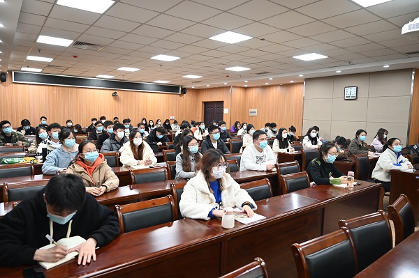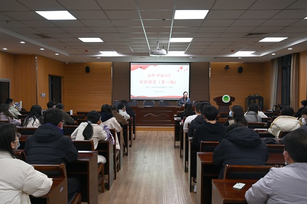 于3月17日晚在第一实验楼南321会议室举办第一期“时政课堂”,院党委副书记郭娟为大家上了第一堂课,学生党支部成员和党员代表参加了会议。