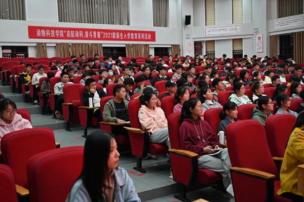 李明以校、院百余年发展脉络为引,详细介绍了学院的学科概况、师资队伍、科研平台、学术交流等深厚底蕴和强大实力。他从办学定位、院训、办学宗旨、学院精神以及发展理念等五方面作详细阐述。他指出,身为动科人,应厚植“团结奋进、力争上游、遵从集体、爱我动科”的学院精神,使之内化于心,外化于形以自强不息、坚定不移的姿态书写动科人的青春华章。他还围绕产教融合、科技创新、文化活动三个方面,勉励新生全面了解、积极参与学院的文体赛事,成长为自信自强、德才兼备、全面发展的动科先锋。