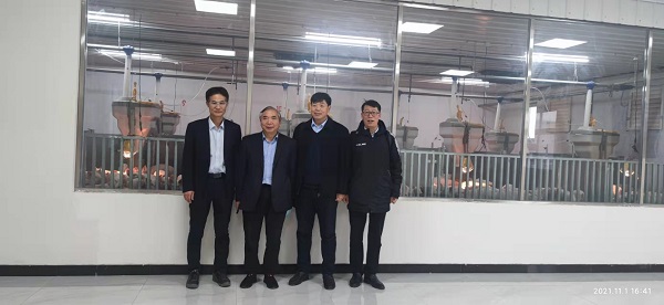 (左一)院长李明、(左二)虞城县副县长吴振兴、(右二)院党委书记贾磊、(右一)河南新航道食品有限公司总经理陈钦辉