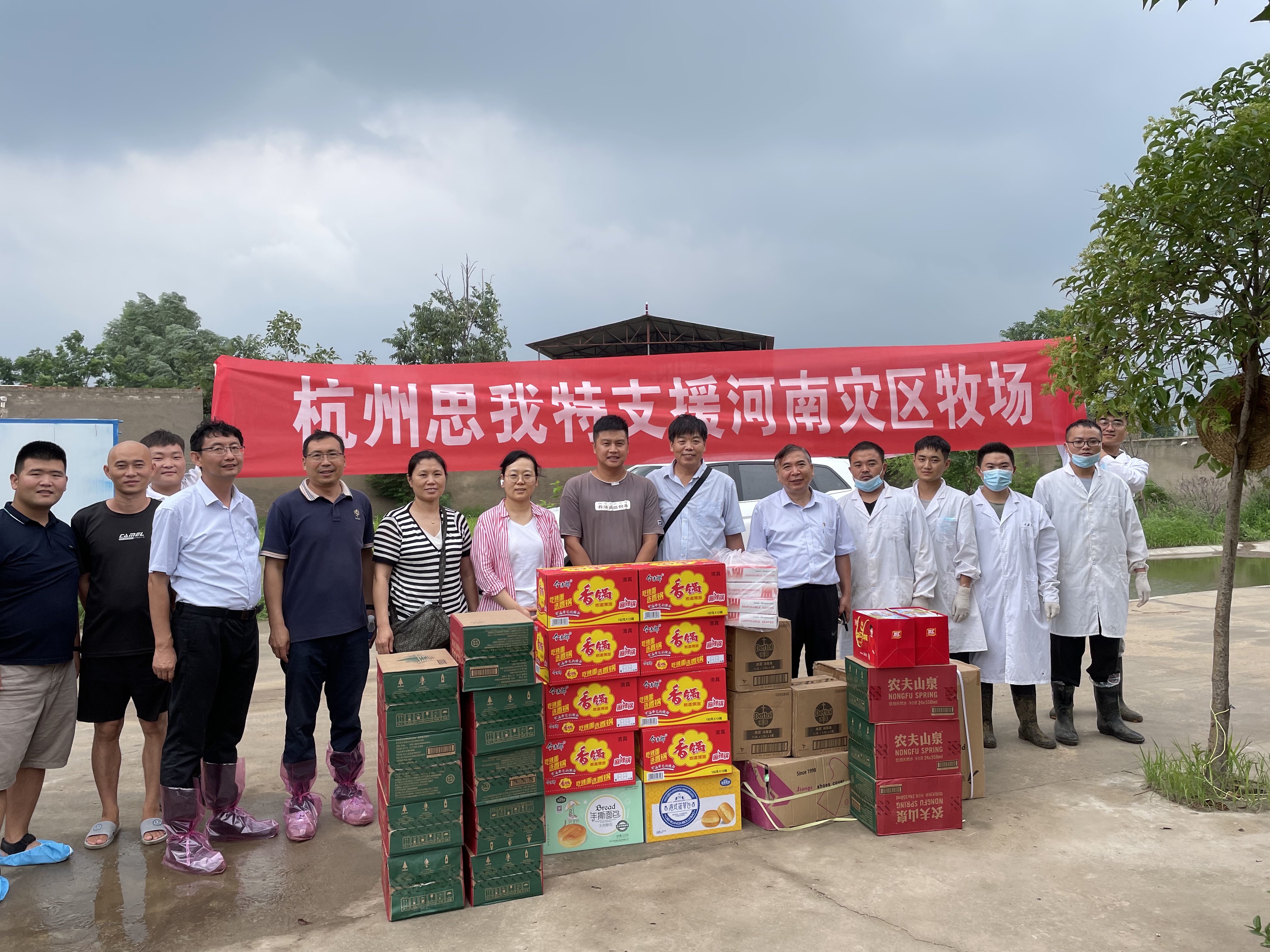 询问受灾情况,从杭州赶到开封杞县奶牛试验场送来灾后防疫用品和食品。