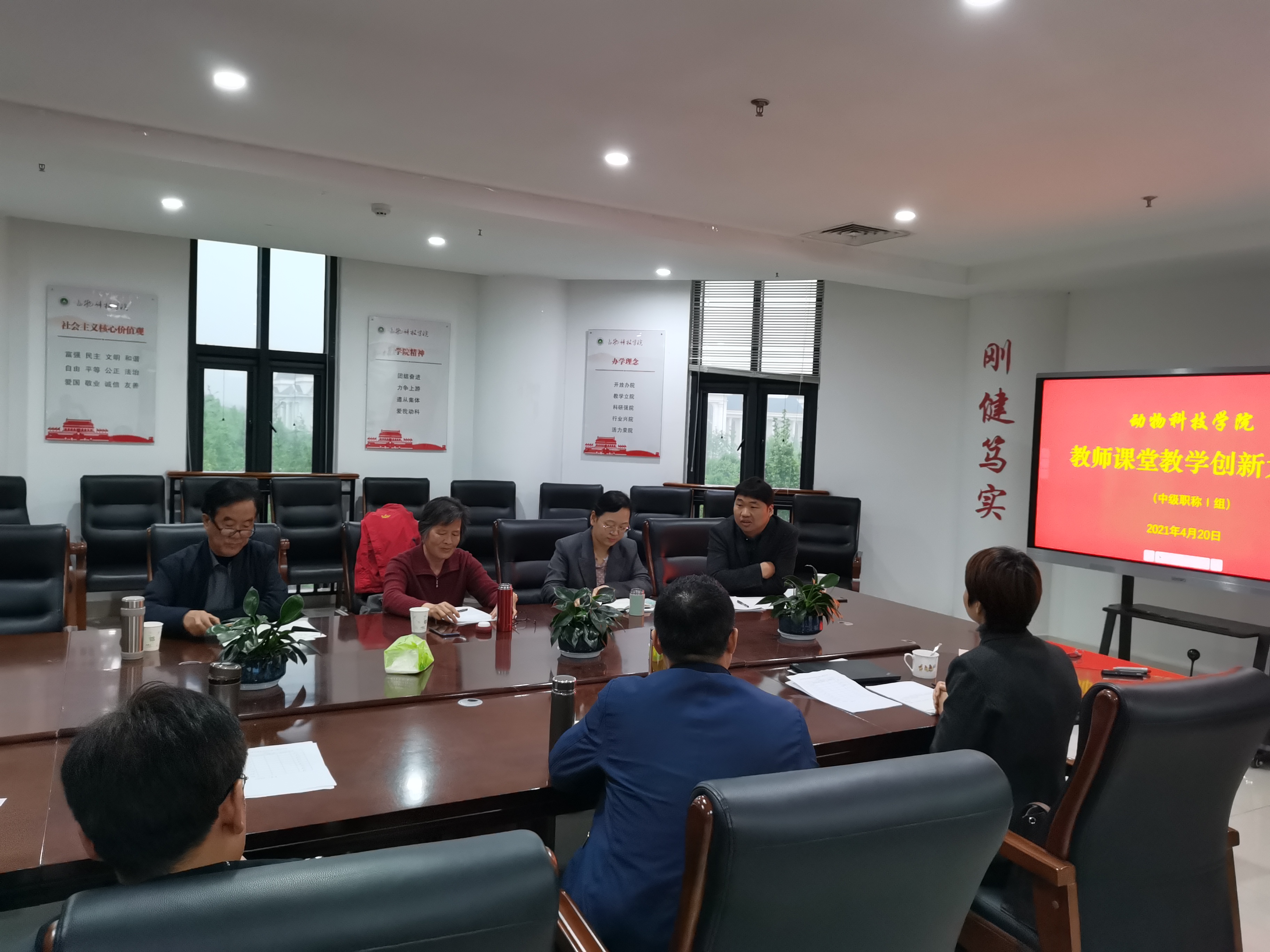 于2021年4月20日举行了2021年度教师课堂教学创新大赛。教务处副处长、教师工作部副部长王金铎莅临指导,校教学督导余永昌、肖传斌、梁爱琴老师,院教学督导王成章老师与各系部教授代表组成评委团,学院全体教工观摩比赛。院党委书记贾磊主持开幕式。