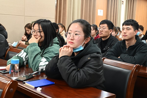 田亚东通报了学院考研基本情况,讲解了研究生招生录取、调剂的政策及研究生复试的注意事项等方面的内容。付彤就本科生论文撰写、毕业重修和论文答辩等教学方面的工作进行了安排和指导。郭娟从就业方向的选择、就业心态的调整、就业政策、就业协议书签订、就业手续办理等方面进行了详细解读。