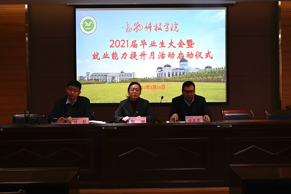 本网讯(通讯员 黄璞)3月16日上午,学院在第一实验楼南321会议室举办了2021届毕业大会暨就业能力提升活动启动仪式,会议由院党委副书记郭娟主持,副院长田亚东、付彤和2021届全体毕业生参加了本次会议。