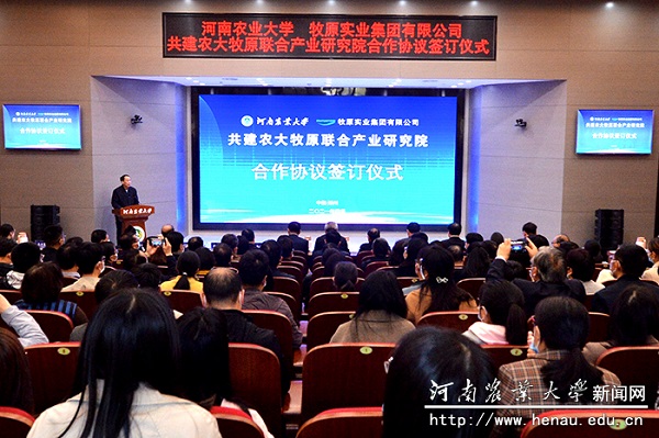 与牧原实业集团有限公司共建农大牧原联合产业研究院签约仪式在龙子湖校区召开。校长、中国工程院院士张改平与牧原实业集团有限公司党委书记、总裁秦英林代表双方签署共建合作协议。此次合作旨在着力解决产业存在的突出问题,引领行业产业发展,支撑牧原集团成为世界一流企业,支持脱裤吧