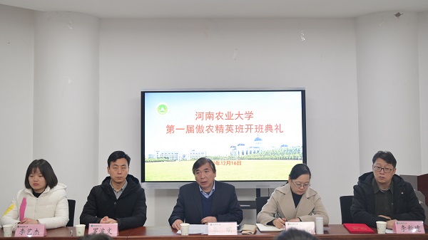在第一实验楼530会议室举行第一届“傲农精英班”开班典礼。傲农集团人力资源中心人才开发部总监罗波文,傲农集团河南傲农人事经理李艺杰,院长李明、党委副书记郭娟、党政办公室主任李新建和团委副书记黄璞出席开班典礼。仪式由郭娟主持。