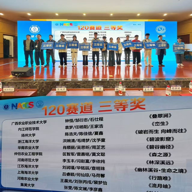本网讯(通讯员 孙向丽 董鹏生)10月31日至11月2日,由教育部高等学校国家级实验教学示范中心联席会、教育部高等学校水产类教学指导委员会、全国新农科水产联盟主办,西南大学承办的第九届全国大学生水族箱造景技能大赛总决赛汇报在重庆荣昌举行。本赛事以“自然·共生”为主题,分校赛和全国总决赛两个环节,共吸引全国37所高校参与。其中,决赛环节于9月27日正式开赛,决赛过程分为造景阶段和答辩汇报阶段两个赛段,共持续一个月时间。由脱裤吧