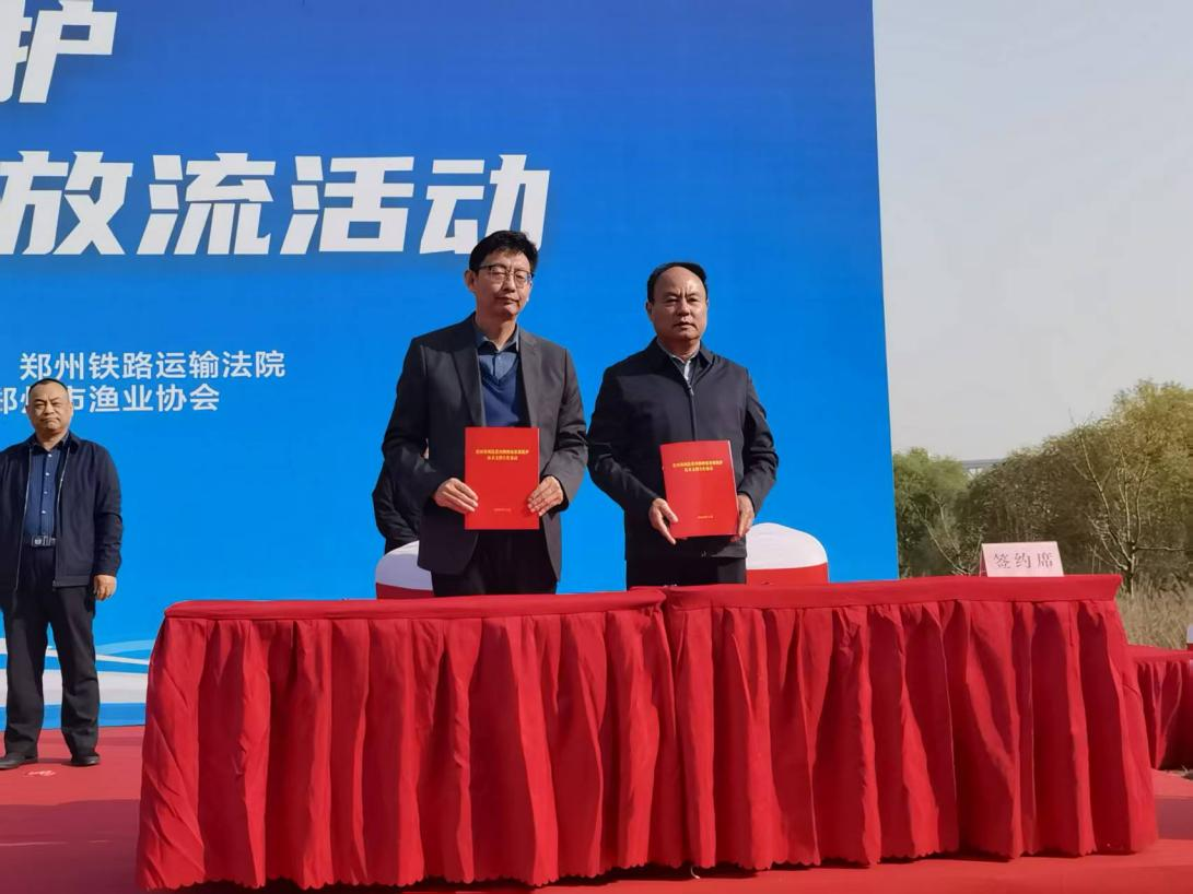 活动现场,付彤代表学院与郑州市农业农村局签署《黄河郑州段渔业资源保护及郑州市渔业绿色健康养殖战略合作框架协议》,并作为技术支持单位与郑州市农业经济发展中心签署《黄河郑州段黄河鲤种质资源保护技术支撑合作协议》。