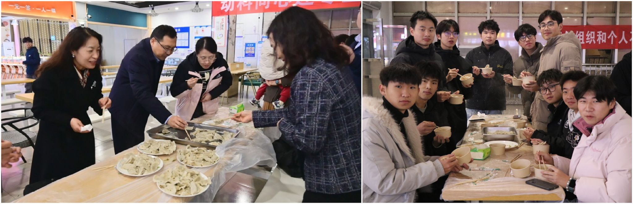 于桃李园生活区综合楼一、二楼举办“情暖冬至日 饺香动科人”——第五届迎冬至包饺子活动,院党委书记张利冰,院长田亚东,院党委副书记、工会主席、纪委书记王玲,副院长蒋瑞瑞,辅导员郭明,2025级本科生班主任及全体学生欢聚一堂,共迎冬至。
