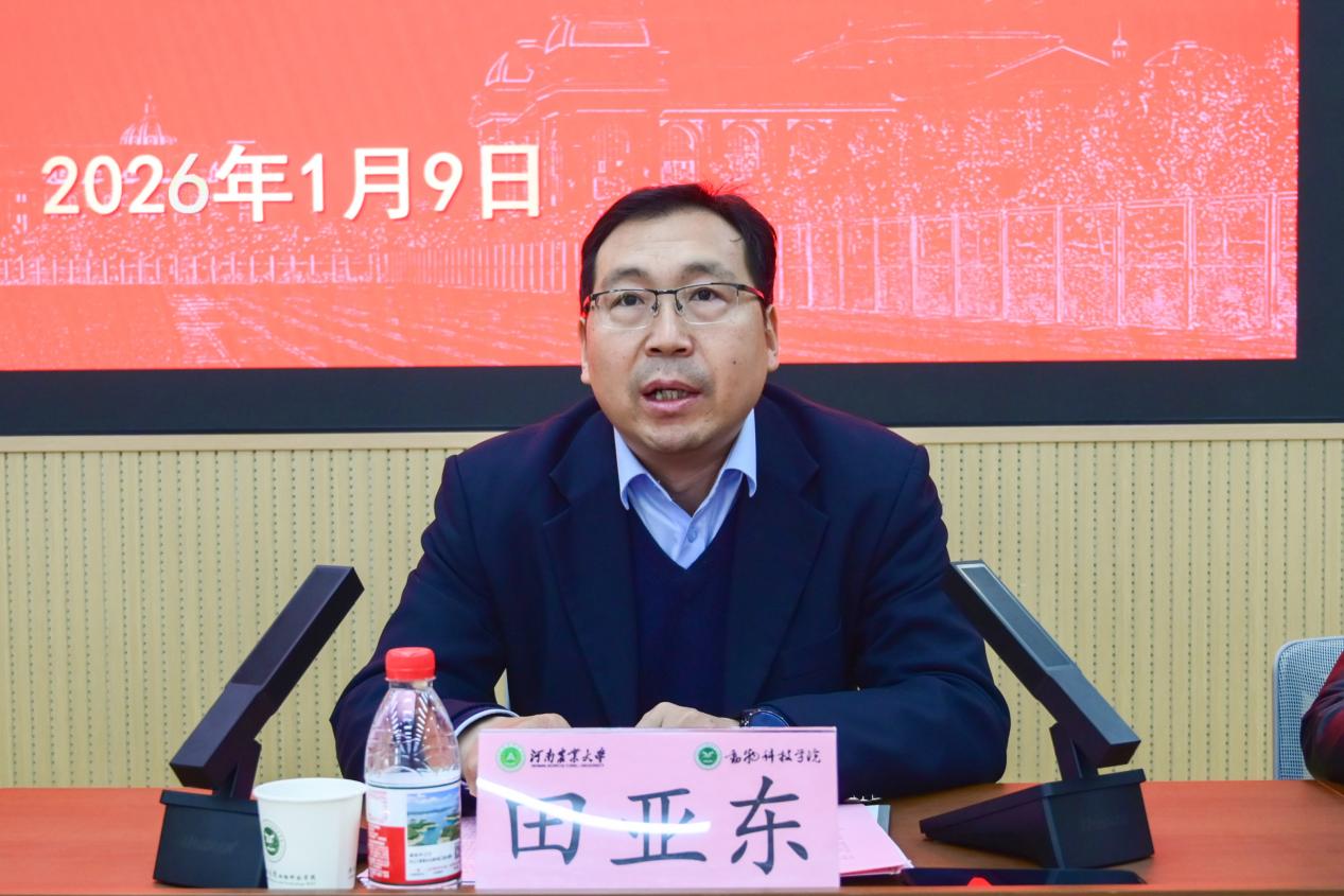 田亚东在讲话中对企业的到来表示欢迎与感谢,并对获奖师生表示祝贺,并提出两点期许:一是心怀感恩、接续奋斗;二是创新进取、追求卓越。他勉励师生以此次获奖为激励,保持锐意进取精神,不断成长进步,为农牧产业和社会发展贡献力量。