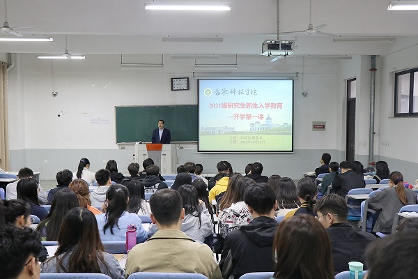 于10月11日晚邀请副院长田亚东教授在教学楼C208为全体研究生新生上开学第一课,2021级硕博86名新生参加了报告会。