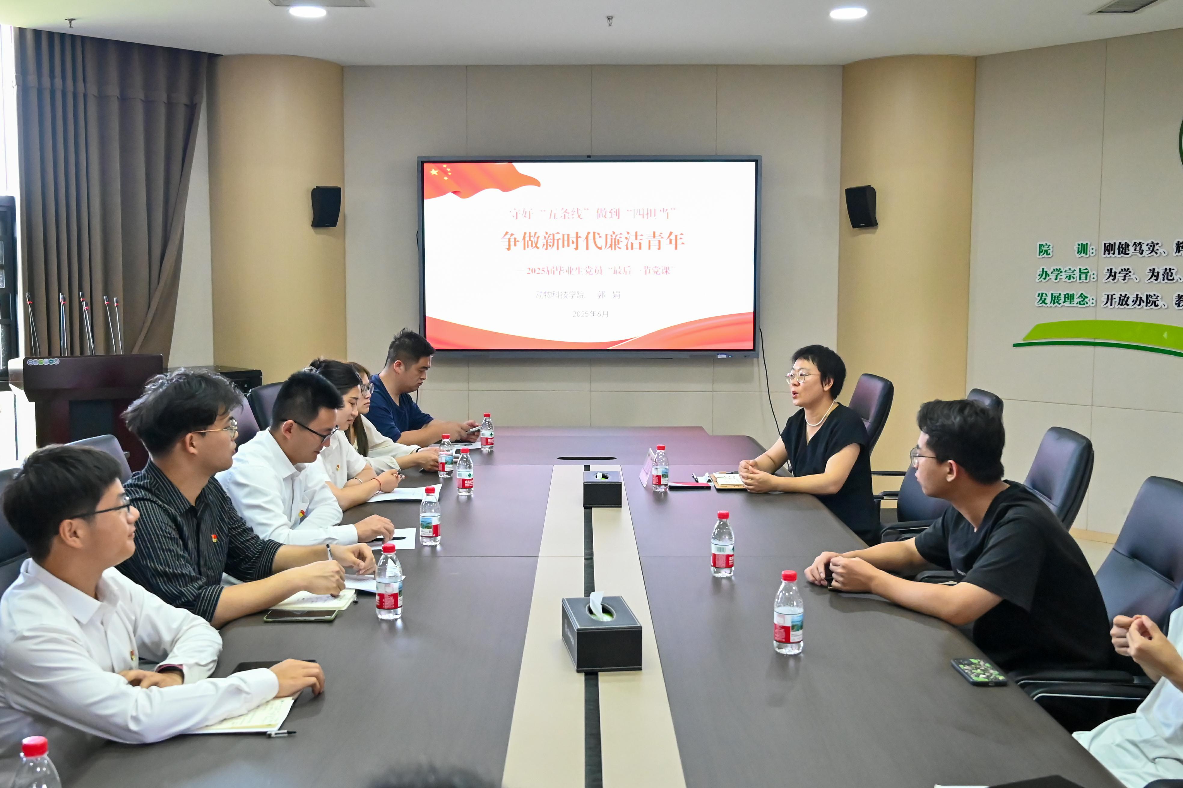 于龙子湖校区第一实验楼501会议室举办2025届毕业生党员“最后一节党课”活动。