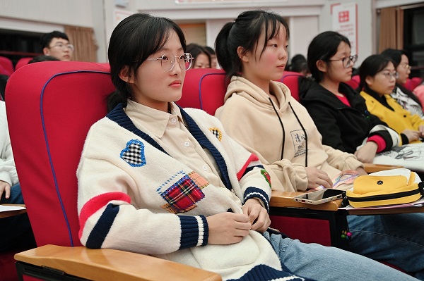 她指出,当前同学们身处实现“两个一百年”奋斗目标的历史交汇期,见证了百年党史的砥砺辉煌,也将全程参与下一个百年的续写,作为新时代大学生,要不断厚植对党的理论情感认同和行动自觉,在学习、生活、工作等多方面发挥先锋模范带头作用。她寄语新生同学们要坚定理想信念、赓续红色基因,做知行合一的排头兵,争取以优异的表现,早日站在党旗下。