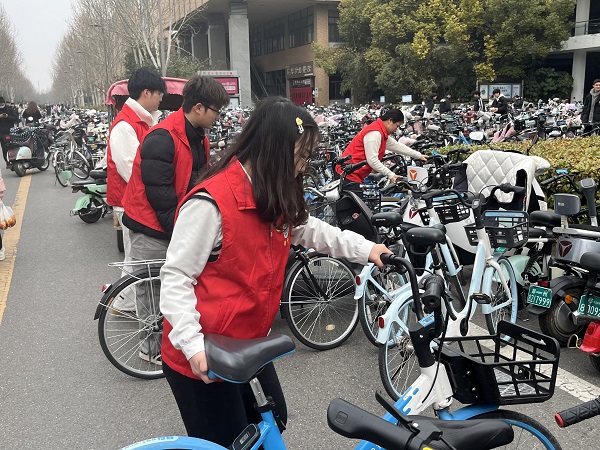 本科生第一党支部开展了“学雷锋,树新风——校园车辆摆放”志愿活动,充分发挥党员先锋模范作用。活动现场,志愿者们深入各个角落,对随意停放的自行车进行规范摆放,并引导大家树立安全用车意识,规范有序停车,共同维护良好校园秩序,藉此带动更多学子爱校护校。