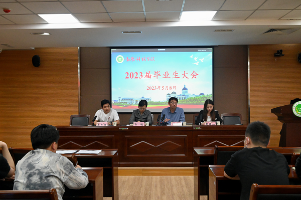 于龙子湖校区的第一实验楼321会议室召开2023届毕业生大会,院党委副书记郭娟、副院长付彤、教学秘书李秀领、辅导员赵姝灿出席本次会议,2023届全体毕业生通过线上线下相结合的方式参加会议,会议由赵姝灿主持。