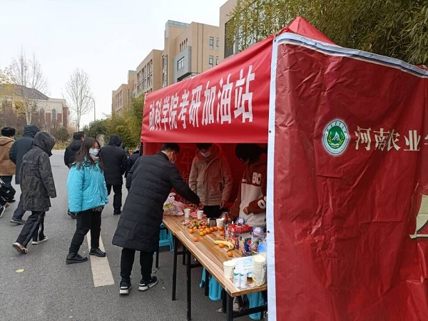 为助力考研学子,在第一实验楼301、330会议室、学习氧吧自习室等地为风景园林与艺术学院考研学子设立温馨考研休息室,在第二餐厅门前设立动科学子考研加油站,在脱裤吧