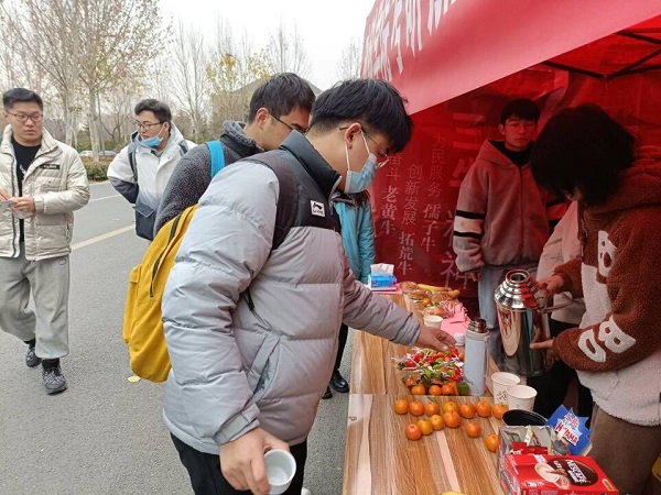 团委副书记黄璞老师带领下,大家一道为考研学子送温暖,助力全体考生一研为定、马到功成。