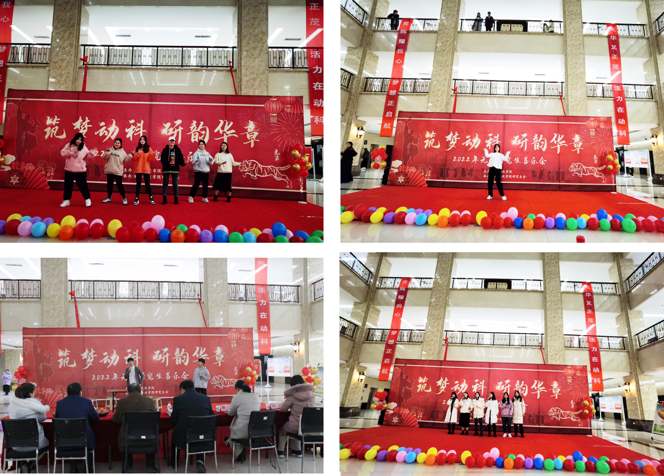 在龙子湖校区第一实验楼一楼大厅举办了“筑梦动科,研韵华章”2022年元旦研究生喜乐会。院党委书记贾磊、院长李明、院党委副书记郭娟、副院长田亚东、院团委书记韩笑、研究生辅导员张彦华和全体研究生参加,共同喜迎元旦佳节。