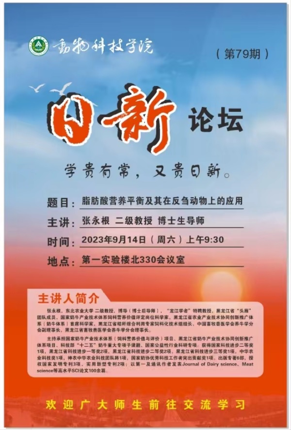 东北农业大学张永根教授将做客脱裤吧 “日新论坛”(第79期)