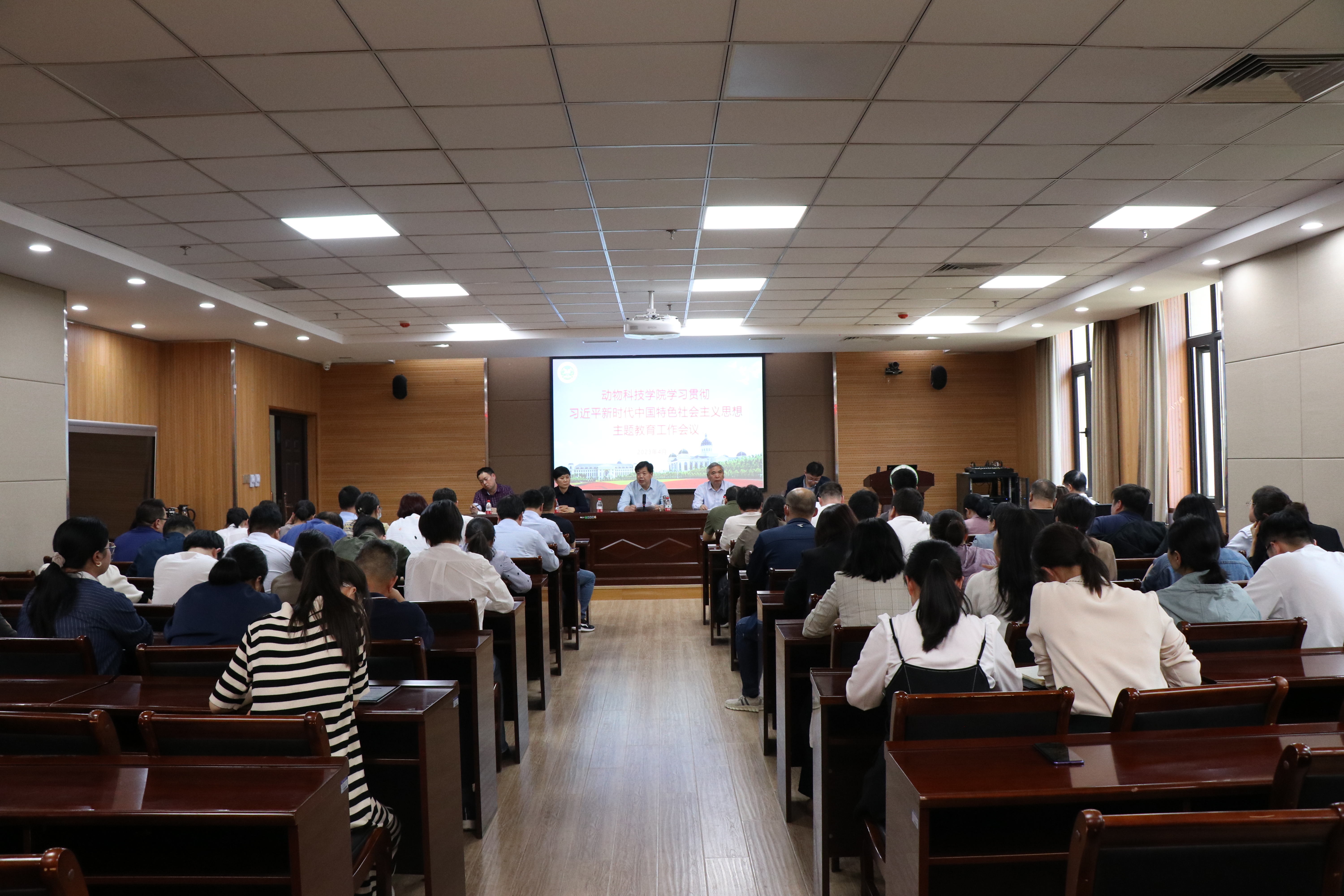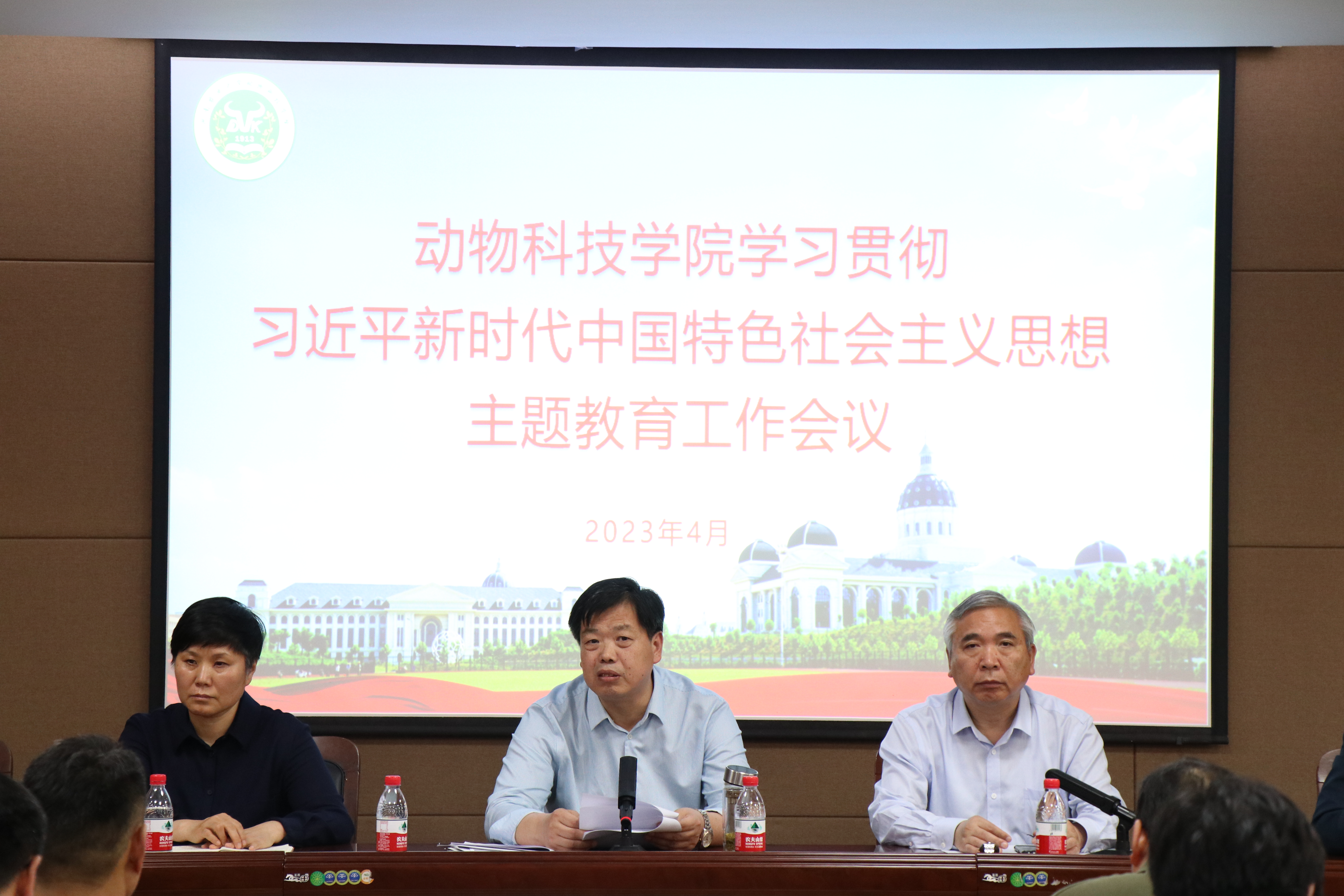 本网讯(通讯员 韩以凝)为了贯彻落实党的工作部署,深入学习习近平新时代中国特色社会主义思想,4月19日中午,脱裤吧 于龙子湖校区第一实验楼北321召开学习贯彻习近平新时代中国特色社会主义思想主题教育动员会。脱裤吧 领导班子以及全体教职工参加本次会议。