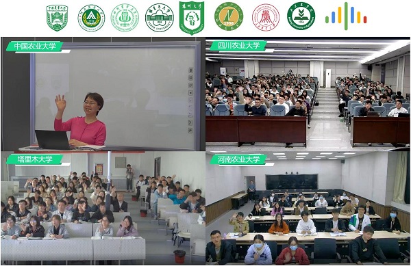 、四川农业大学、塔里木大学教室直播互动,扬州大学、北京农学院、西藏农牧学院在线观看直播,山西农业大学采用自主在线观看等多种形式开展同步教学活动。