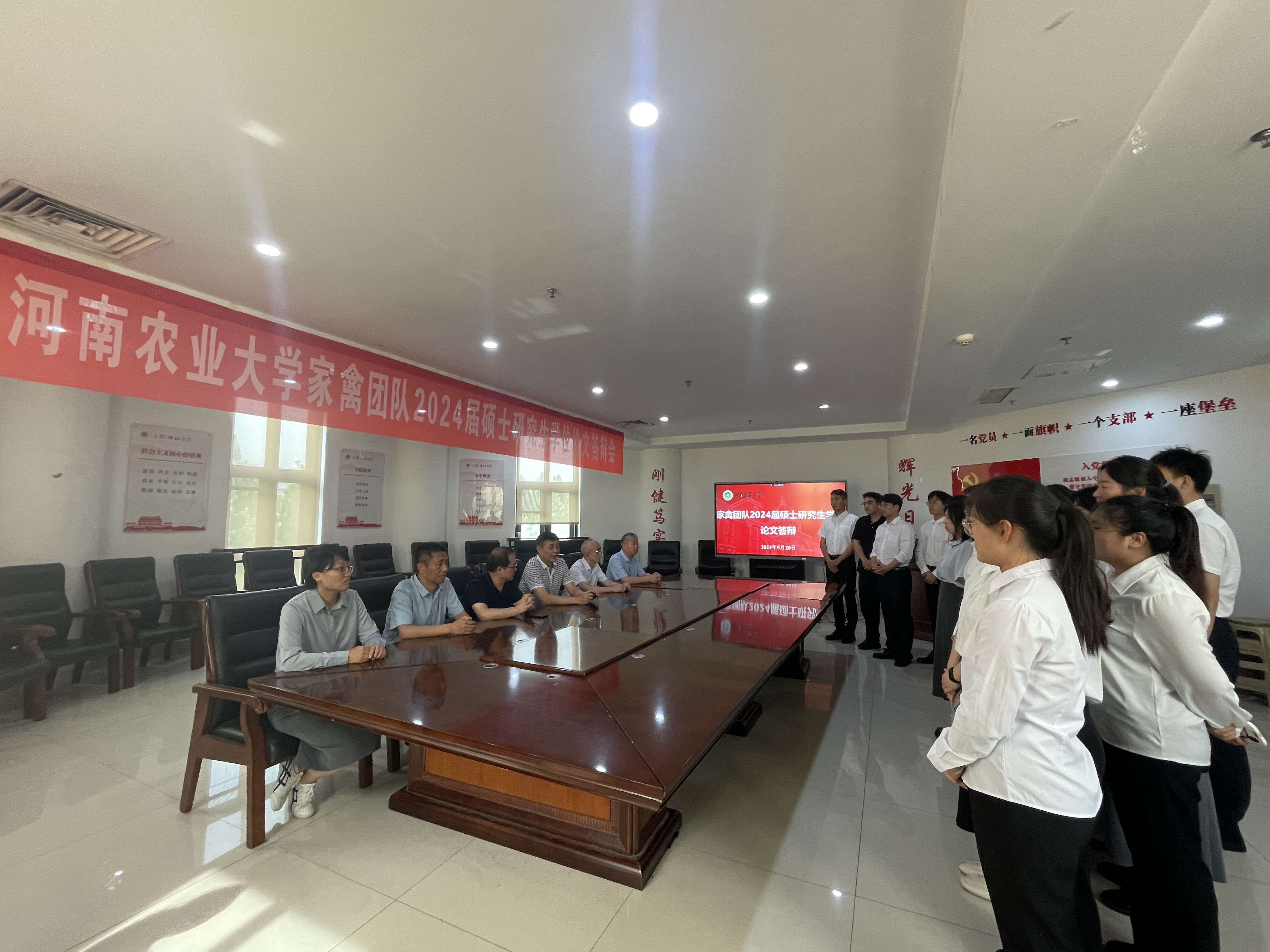 家禽团队2024届硕士研究生学位论文答辩工作顺利开展,会议特邀云南农业大学副校长葛长荣担任答辩委员会主席,湖南省畜牧兽医研究所燕海峰研究员,家禽团队刘小军教授、王彦彬教授、孙桂荣教授、韩瑞丽教授、闫峰宾副教授和李东华副教授担任答辩委员会委员,宫玉杰博士和田卫华博士担任答辩秘书。