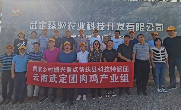 张彦华博士在内的20余位专家、教授、博士及企业家代表组成,武定县委书记罗如贵、县委副书记黄飞及相关部门负责人陪同调研或参加座谈会。7月25日,特派团先后到武定县彝峰壮鸡开发有限公司、云南武定永银农产品开发有限公司、武定臻骥农业开发有限公司、云南首羽农业发展有限公司等企业进行实地调研,与企业负责人和相关人员进行深入交流座谈,详细了解武定壮鸡产业发展现状,并提出了相应的意见和建议。7月26日,开展了国家乡村振兴武定县重点帮扶科技特派团肉鸡产业发展座谈会,就武定基本县情、武定壮鸡产业发展情况、存在困难及下一步工作计划进行商讨。专家组对武定壮鸡产业发展提出了强化种源保护、强化技术合作、强化招商引资、强化绿色发展、发展规模养殖等意见建议,并提出科技特派团肉鸡产业组的帮扶思路,确定三年工作目标任务,制定年度工作计划,围绕武定壮鸡产业技术指导服务、品种技术引进推广、技术瓶颈集中攻关、本土人才培养帮带、产业功能拓展等方面开展全产业链技术服务,全力助推武定壮鸡产业发展取得新突破。