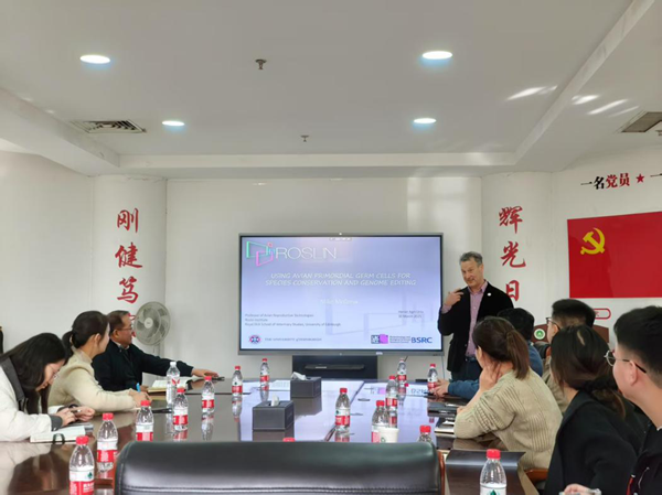 在龙子湖校区第一实验楼北330会议室举办第178期“日新论坛”。本次论坛邀请Dr. Mike McGrew教授带来了一场主题为“USING AVIAN PRIMORDIAL GERM CELLS FOR SPECIES CONSERVATION AND GENOME EDITING”的精彩学术报告。报告会由脱裤吧