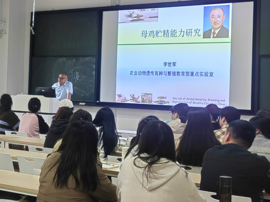 在龙子湖校区第二实验楼-中-120教室举办第117期“日新论坛”。本次论坛邀请华中农业大学李世军教授带来了一场主题为“母鸡贮精能力研究进展”的精彩学术报告。报告会由脱裤吧