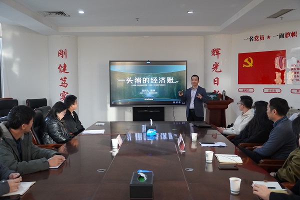 陈兴以《一头猪的经济账》为题,从猪的前世今生,生猪产业赛道、生猪产业数智化特点、一头猪的经济账四个方面进行宣讲。他在报告中指出,当前养猪产业面临着诸多挑战,为实现猪场经济的可持续发展,需要从多个方面入手,包括提高生产效率、新科技+产业协同、优化资源配置等。