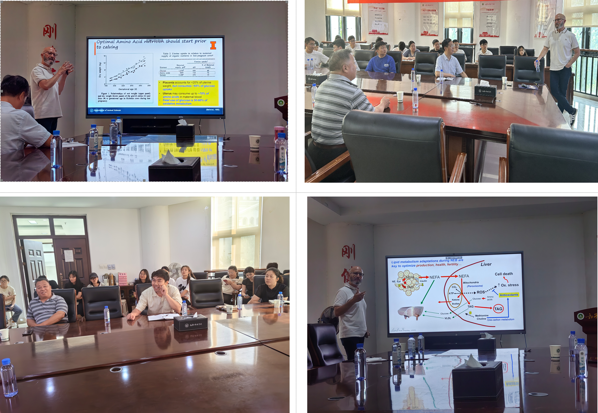 在第一实验楼330会议室举办了第104期“日新论坛”,美国伊利诺伊大学香槟分校Juan J. Loor教授以《Management for Optimal Health and Production of Dairy Cows》为题为学院师生作学术报告。报告会由孙宇副院长主持,高腾云教授及相关学科的教师和研究生参加。