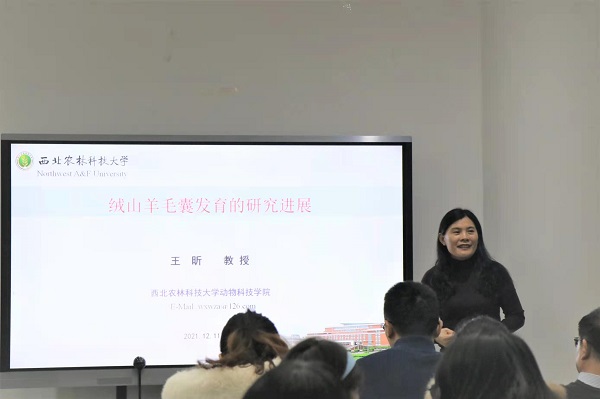 王昕教授以《绒山羊毛囊发育的研究进展》为题,通过简单介绍陕北白绒山羊,深入讲解了绒山羊毛囊发生发育中lncRNA的筛选与鉴定、绒山羊毛囊发生过程单细胞转录图谱的构建、褪黑素影响绒山羊HFSCs增殖与分化、绒山羊毛囊发生发育关键信号通路和基因的筛选和鉴定、Hoxc13对毛发角蛋白的调控及其自身的调控机制、DNA甲基化对绒山羊毛囊分化的调控六项研究结果,为脱裤吧