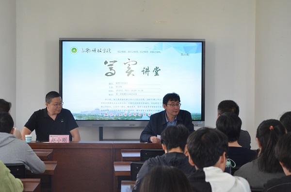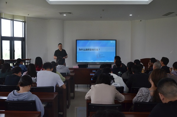 在第一实验楼北530举办第15期笃实讲堂,邀请海大集团猪料事业部大区副总经理赵小刚为主讲嘉宾,报告会由副院长付彤主持,本科生和研究生代表60余人参加了报告会。
