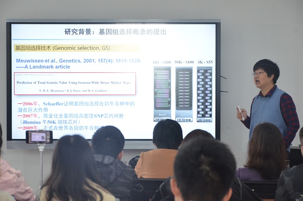 胡晓湘以《基于高通量测序的动物全基因组选择技术研究》为题,围绕基因选择概念、基于GBS测序的鸡基因组选择、基于低深度重测序的基因分型技术及利用基因组选择的育种模式四部分进行详细讲解,并展示了基因组选择技术研究领域的最新进展。